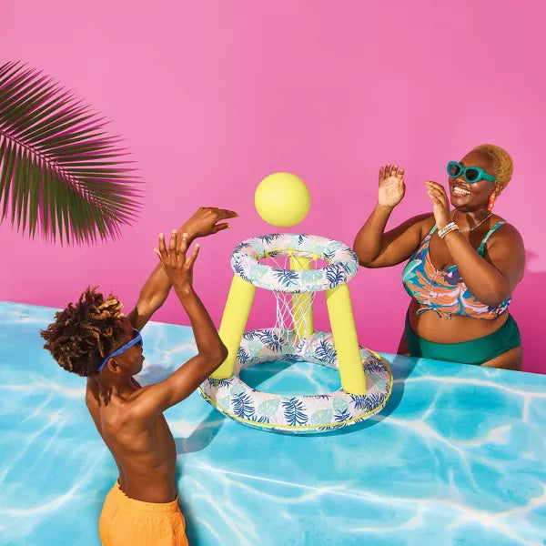 Great for pool parties, endless summer days, and vacations, this inflatable pool game set includes 1 floating net and 1 ball; Carry/storage bag included; For ages 5 and up